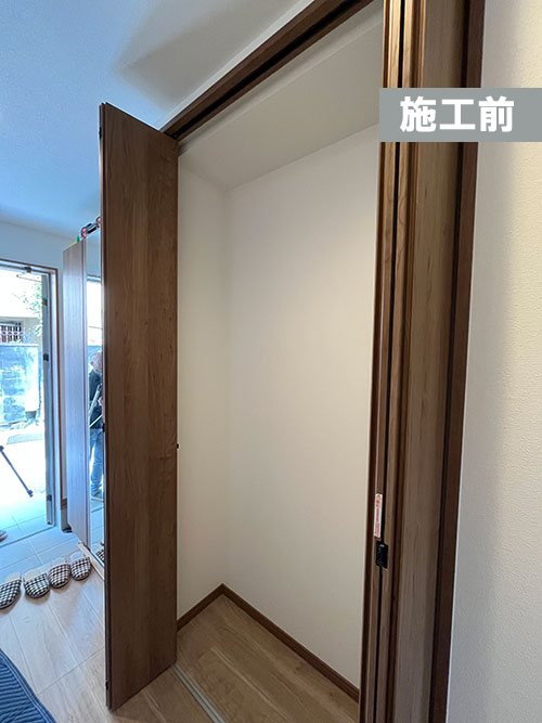 玄関収納に可動式の棚板造作工事をさせて頂きました。