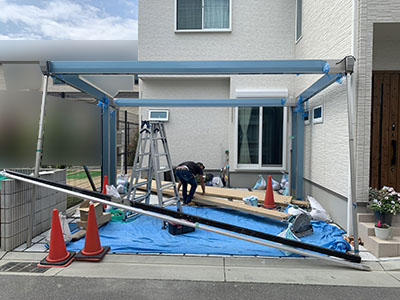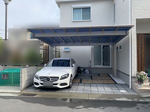 一覧ページに戻る 101~200万円外構 大型車も安心♪駐車場屋根設置工事 「大きなカーポート屋根が欲しい」というご要望にお応えし、YKKの商品をご提案させていただきました。外車と日本車の大型車二台分のカーポートが完成し、大変喜んでいただきました。 施工時期 2021年6月 工事期間 4日間 工事内容 ガレージ新築工事 予算 約190万円 PICK UP クリックタップで写真を拡大できます。 施工前 施工後 施工前 施工後 施工前~施工中 【施工前】 【施工中】 施工後 一覧ページに戻る このページを印刷する