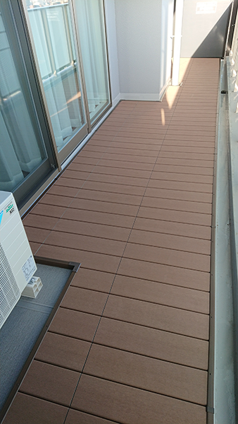 一覧ページに戻る 外構 高層階でも安心なベランダデッキ設置工事 高層マンションの15階にあるベランダにデッキをご希望されてらっしゃいましたので、高層階でも設置可能なかつ、強風による影響を受けにくい商品をご提案させていただきました。 工事時期 2018年4月 工事期間 1日間 工事内容 ベランダデッキ設置工事 施工前 写真をクリックで拡大します 施工後 一覧ページに戻る このページを印刷する