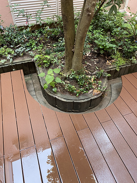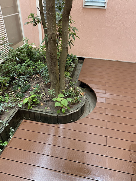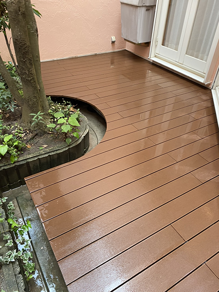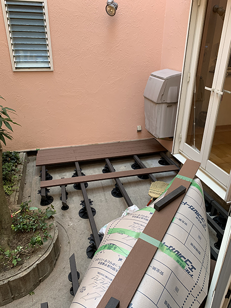 一覧ページに戻る 外構 中庭でくつろぎの空間を♪ウッドデッキ設置工事 中庭でゆっくりできるように ウッドデッキを設置いたしました。 落ち葉の掃除が出来るように、ブロック沿いにほうきが入る様に空間を開けました❕ 工事時期 2020年9月 工事期間 4日間 工事内容 ウッドデッキ設置工事 予算 50万円 施工前~施工中 写真をクリックで拡大します 【施工前】 施工中①まず、薄いベニヤ板で、円形部分の型を取ります。 施工中②次に、ベース(束または土台)を根太と接合して、デッキ材の下地作りをします。 施工中③下地が完成したら、デッキ材を並べていきます。 施工後 写真をクリックで拡大します 一覧ページに戻る このページを印刷する