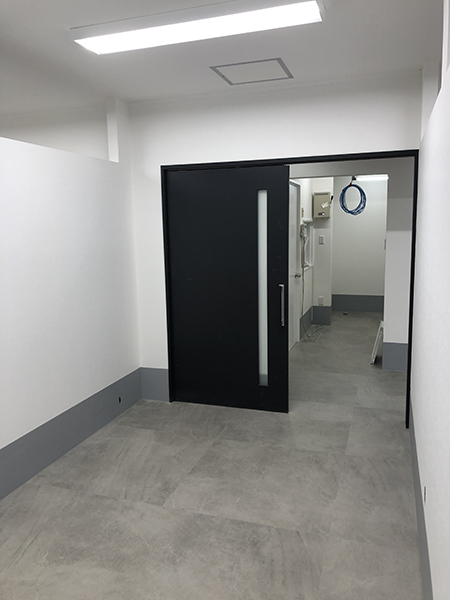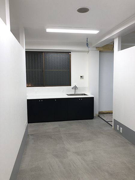 ブラックを基調とした家具工事を施し、グレーの床がおしゃれ感をUPさせています♪