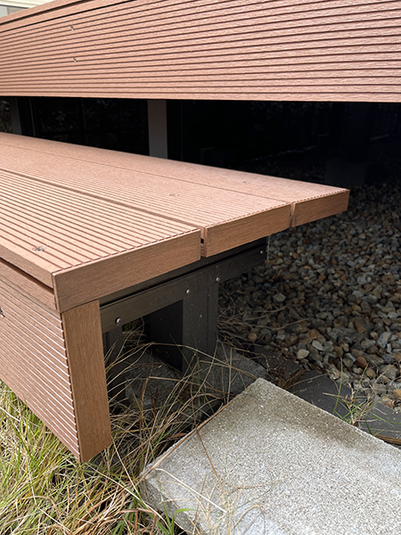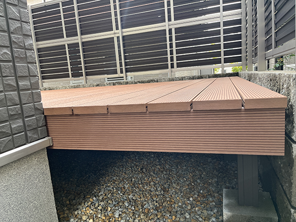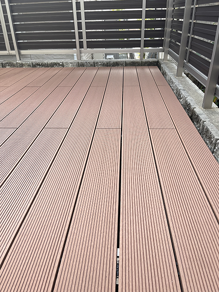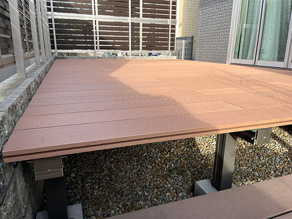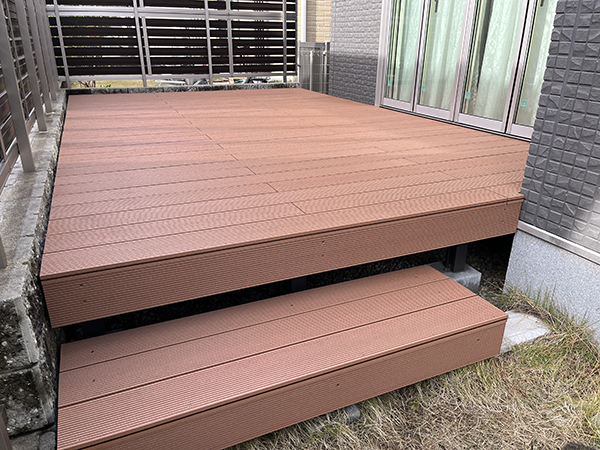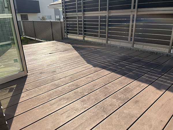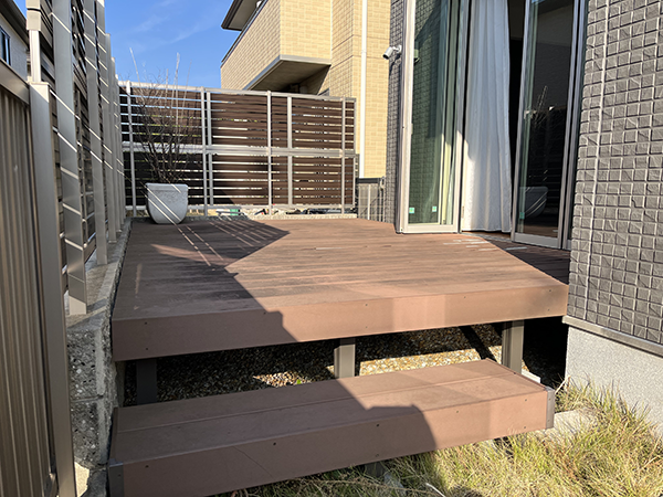 といった声も聞かれます。今回は樹脂製のウッドデッキを採用しました。腐食の心配もなく長く使用していただけるので、メンテナンスも楽で好評です。