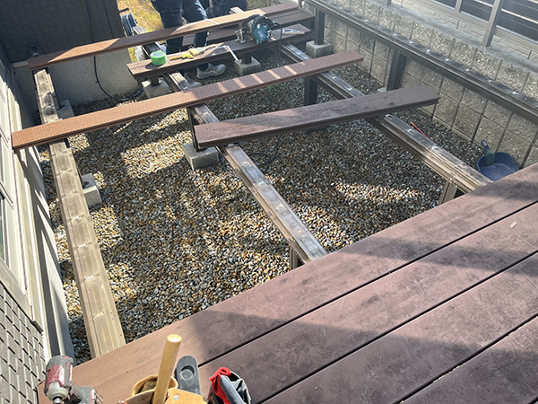 きちんとした下地補強も行っており、しっかりしたウッドデッキに交換できました❕