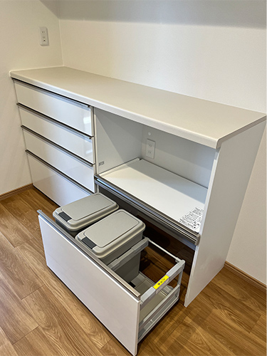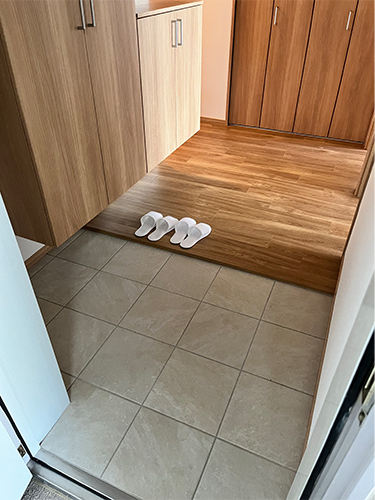 お施主様が建築設計のお仕事をされてることもあり、インタ―フォン位置、ゴミ箱、照明、傘置き場など、こだわりpoint満載の工事となりました。
