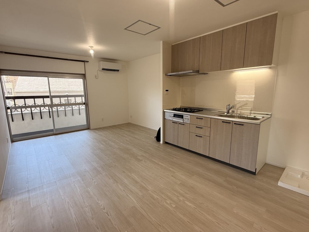 もともとDK+洋室だった間取りの壁を抜いて、開放的なLDKになりました。