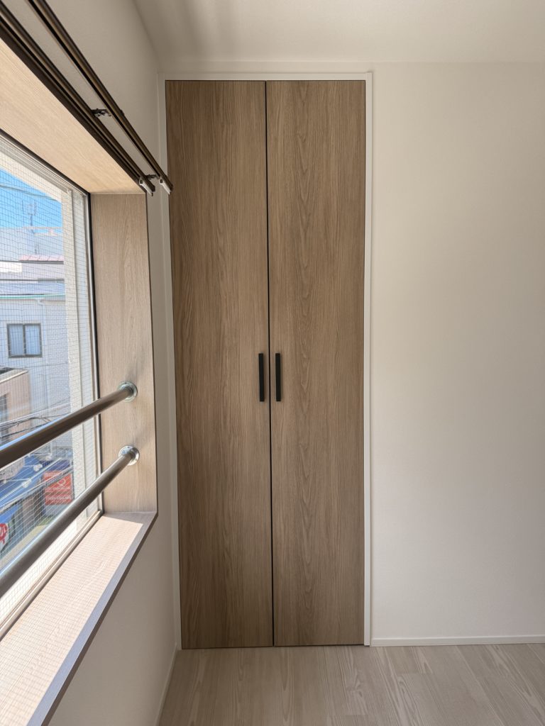 以前は和室のような布団だなの収納でしたが、今回はクローゼット扉を天井までの大開口に入れかえ、洋服をかけられるようなクロゼットに内部も変えています。