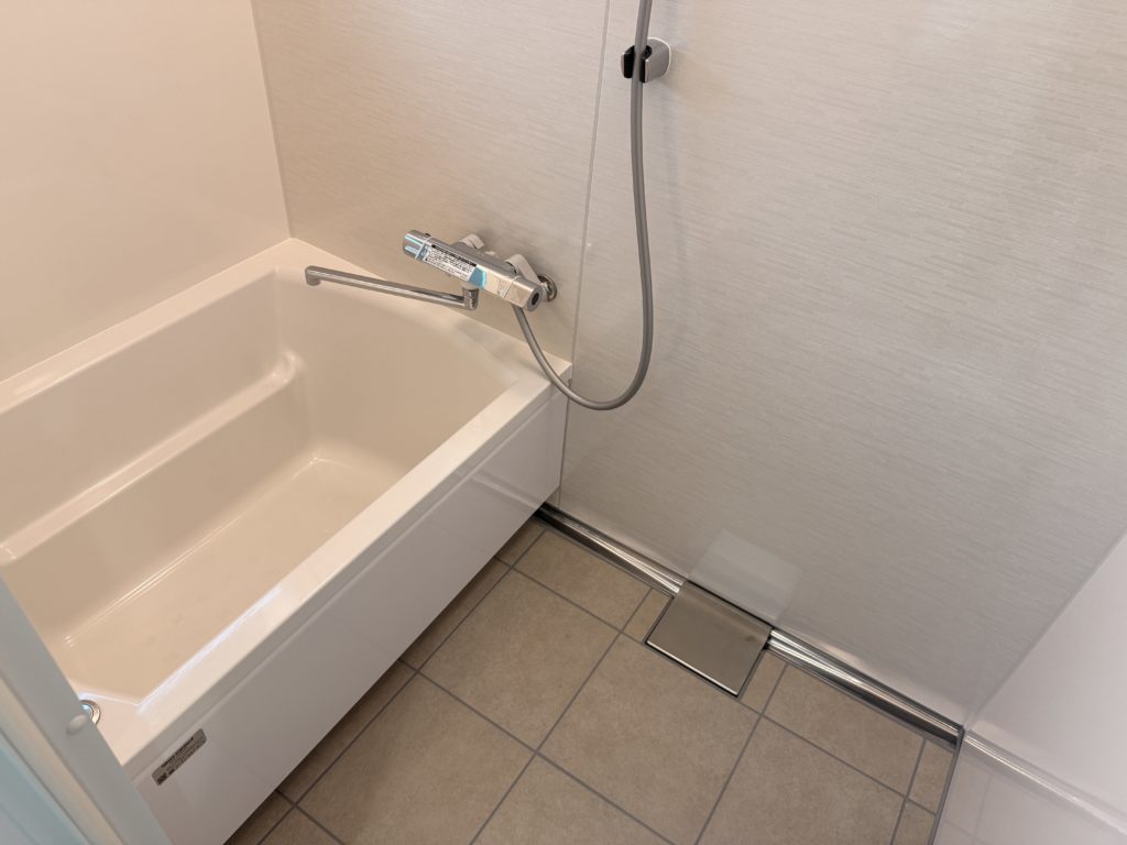 もともと在来工法のように作られていた浴室だったために、浴槽のまたぎ後の深さが深すぎて入りにくく、サイズも規格の寸法から外れて奥行が1m余りしかなかったため、ピッタリサイズシステムのタカラスタンダードグランスパのユニットバスを採用。ホーロー製の浴槽とタイル調の床、そしてすりカラスの内窓を設置して断熱性能もよい分譲マンションレベルの浴室になりました。