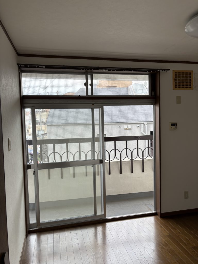 もともとリビングの窓は欄間付きの掃き出し窓がついていましたが、今回はあえて欄間を壁でおおい、引き違い窓のみのこし、カーテンレールを上部に取り付け、圧迫感の出ないように工夫しました。