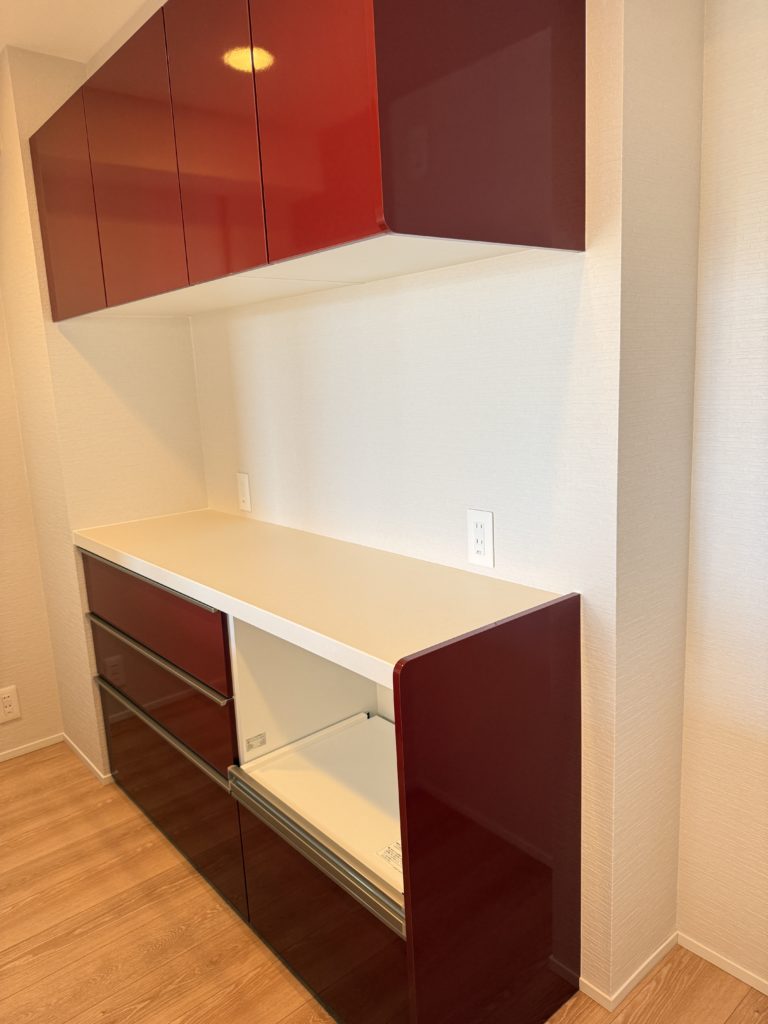 リビング脇にあった約4帖のスペースは、扉を設けて個室として使用できるよう計画しました。隣接し他部屋にはカウンターを撤去し、動線を整理。ドアには引き込み戸を採用することで、閉めれば独立した個室に、開ければリビングとつながる開放的な空間として使えます。現在はワークスペースや趣味室として、将来的には個室としても使える、柔軟性の高い設計です。